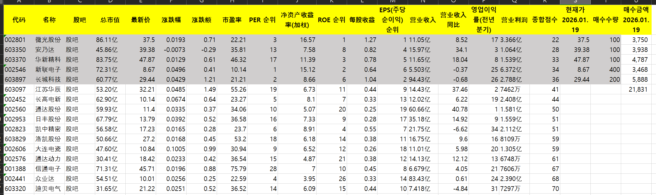1. 전력이나 전기 업종에 투자된 종목 선정